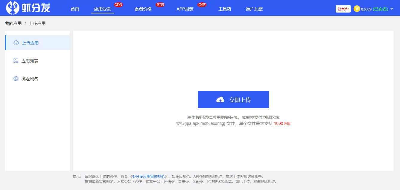 因此许多公司都会采用第三方的应用分发平台,来对自家产品进行内测分发,采用第三方应用分发平台的好处还是比较多的,比如审核周期短,审核难度低,预算更低等等。下面我以虾分发应用分发平台为例,介绍一下如何实现应用分发功能。